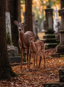 Wherever and whenever I moved, the footsteps followed me. I was afraid, filled with fear, thinking I was being stalked where nobody could help me, alone in the middle of a big cemetery close to dusk. However, when I finally gathered the courage to turn and look, the most beautiful two deer were standing in front of me, their innocent eyes staring into mine.